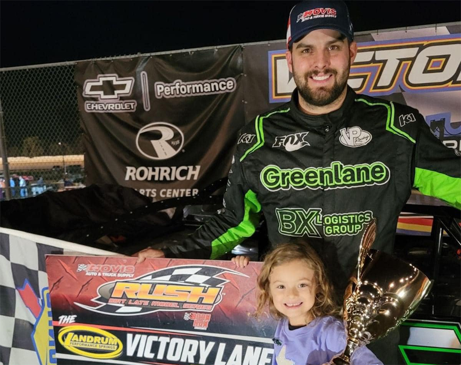 Mason Zeigler and daughter in RUSH Late Model victory lane at PPMS in 2024